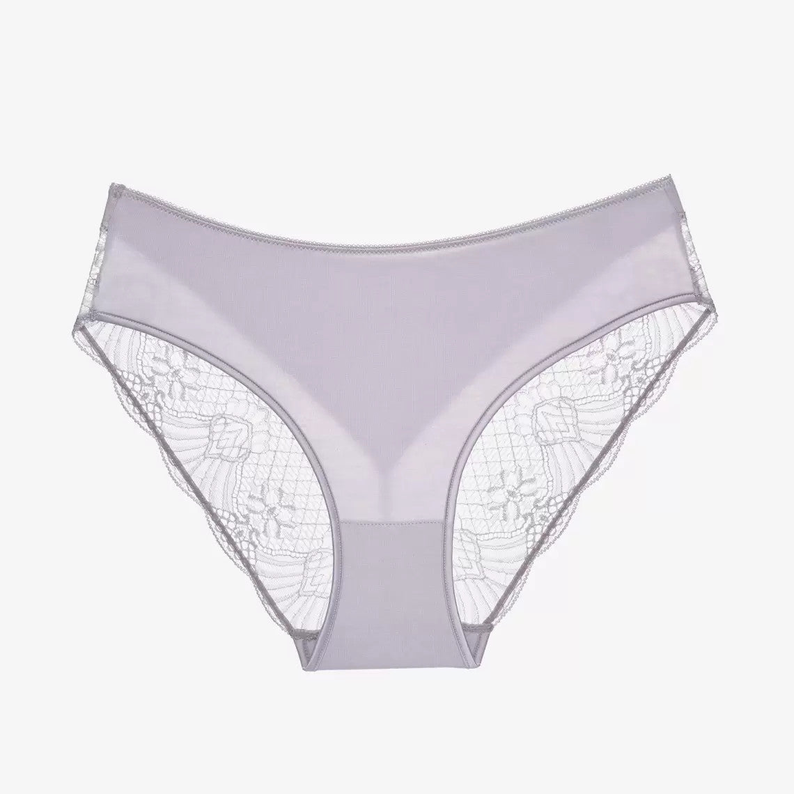 Ajour Praline Mid Rise Brief are mid rise and made up of smooth elastic fabric. The back is decorated with lace with an abstract pattern.