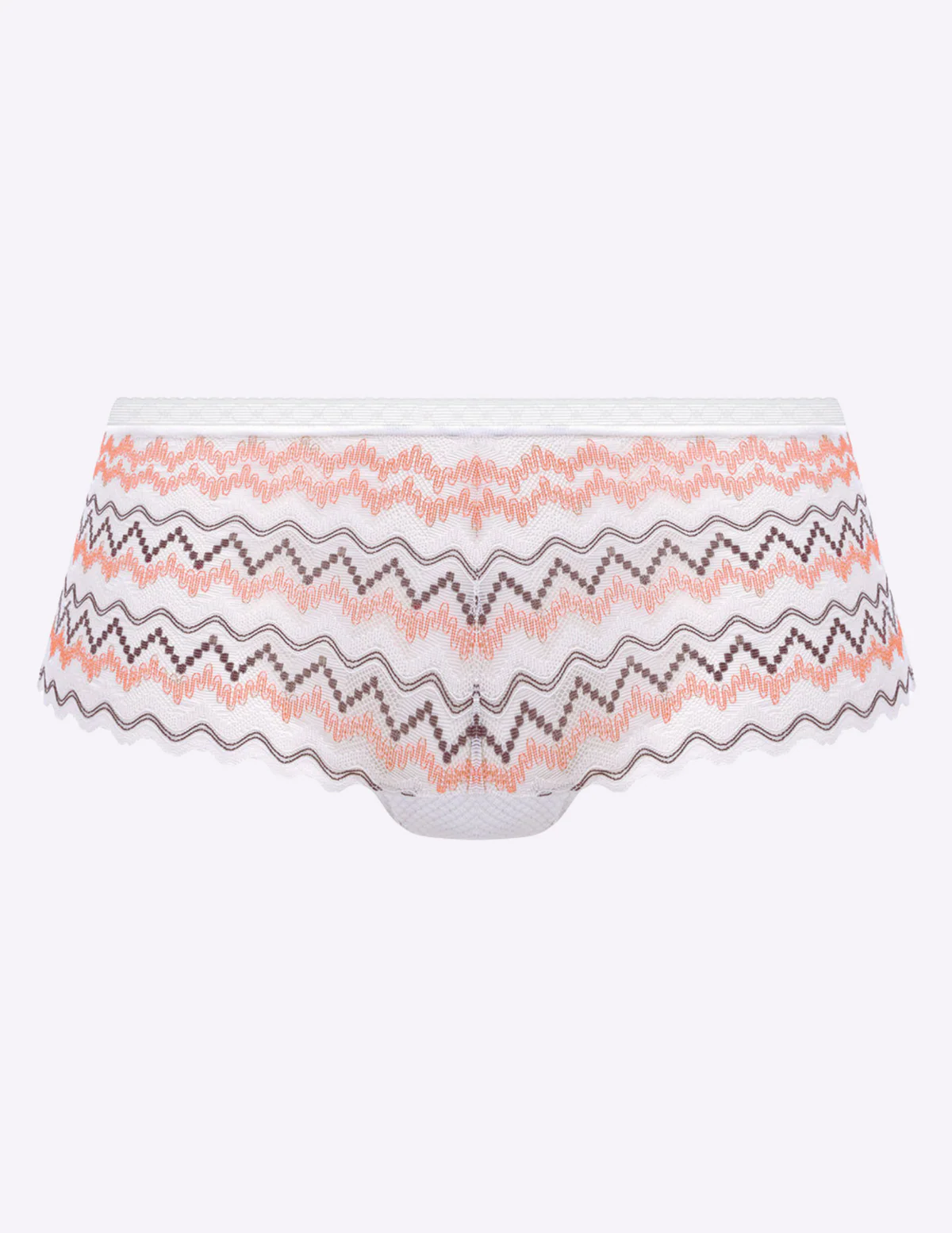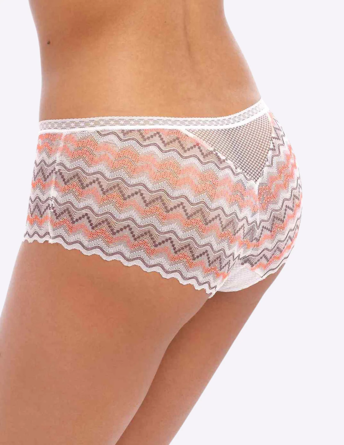 The Festival Vibe Hipster Short from Freya features beautiful three tone geometric lace details. Complete your Festival Vibe look. Pair with the Festival Vibe High Apex bra or the Festival Vibe Molded Demi Plunge bra.