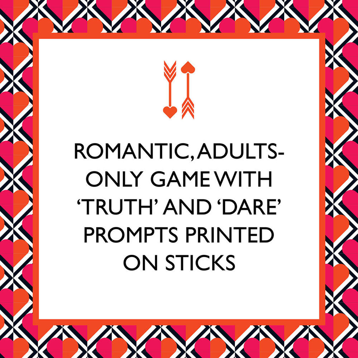 Bring out this beautiful box on the next date night to turn up the heat! Pick a stick and choose a "Truth" ("Have you had phone sex?") or a "Dare" ("Let's play a strip version of our favorite board game"). Includes 50 adults-only sticks with Truths on one side and Dares on the other for 100 different ways for partners to learn about each other and their dirty little secrets and indulge in some tantalizing dares, too!