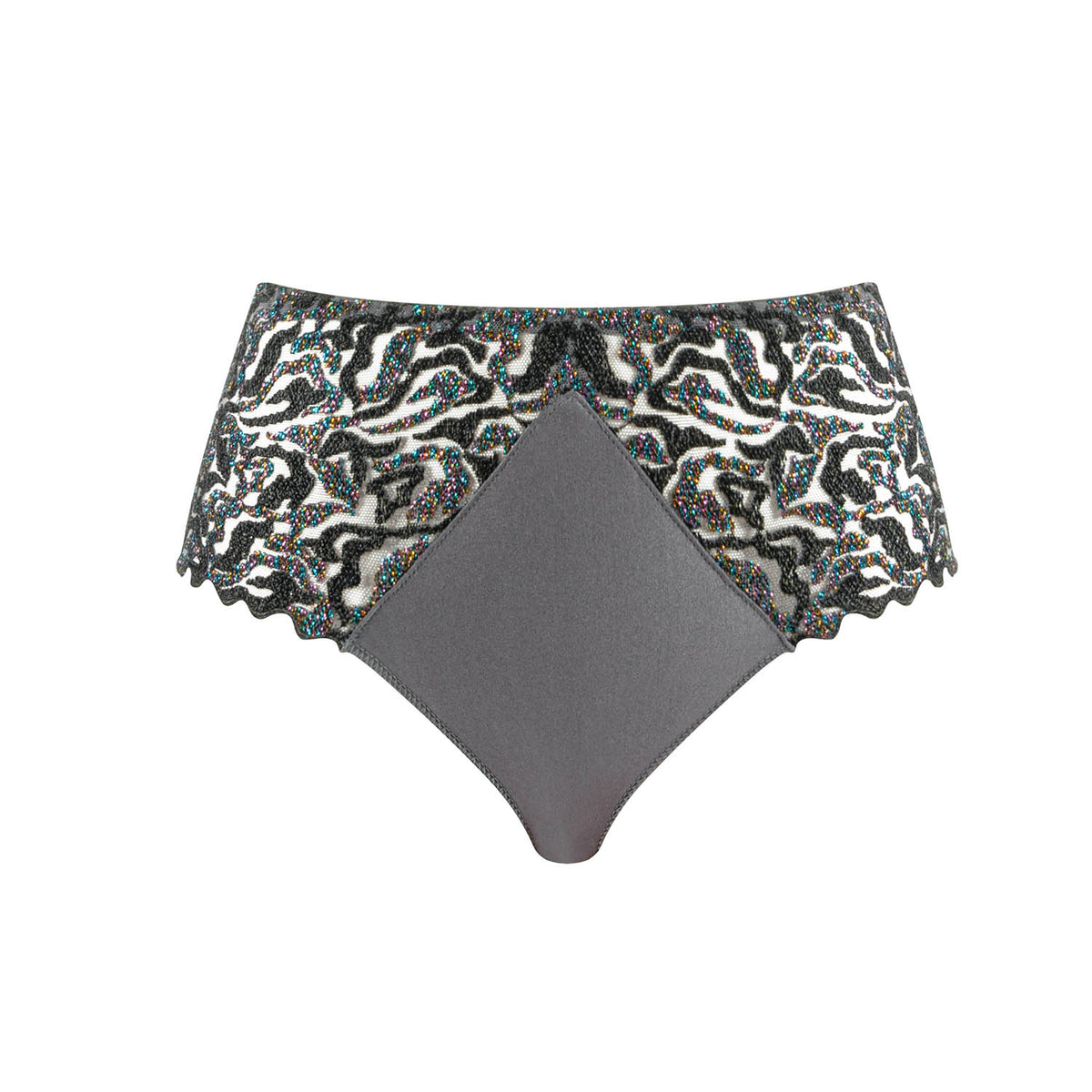 The Louisa Bracq Electric Waves Hipster offers a luminous, modern look with sheer tulle and wave-inspired embroidery accented by shimmering lurex thread. This low-rise style features a wide-cut back edge for a flattering fit, along with an elasticated waistband for added comfort. A small keyhole opening at the back adds a touch of allure, while the seamless rear ensures a smooth, invisible finish under clothing. Finished with a 100% cotton–lined gusset for everyday comfort. Inspired by a stellar, moonlit universe, Electric Waves blends transparency and glamour with ease.