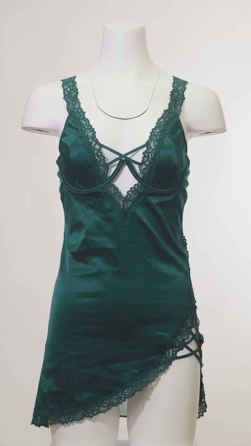 Unleash your confidence with the Mara Strappy Babydoll Dress — a daring blend of structure and seduction. This figure-flattering design features stretch satin in front and breathable mesh in back for a look that’s both bold and comfortable. The underwire padded cups create lift and shape, while the strappy cage design and faux lace-up detailing add a provocative edge. Adjustable lace straps complete this stunning piece, perfect for nights when you want to make a statement.