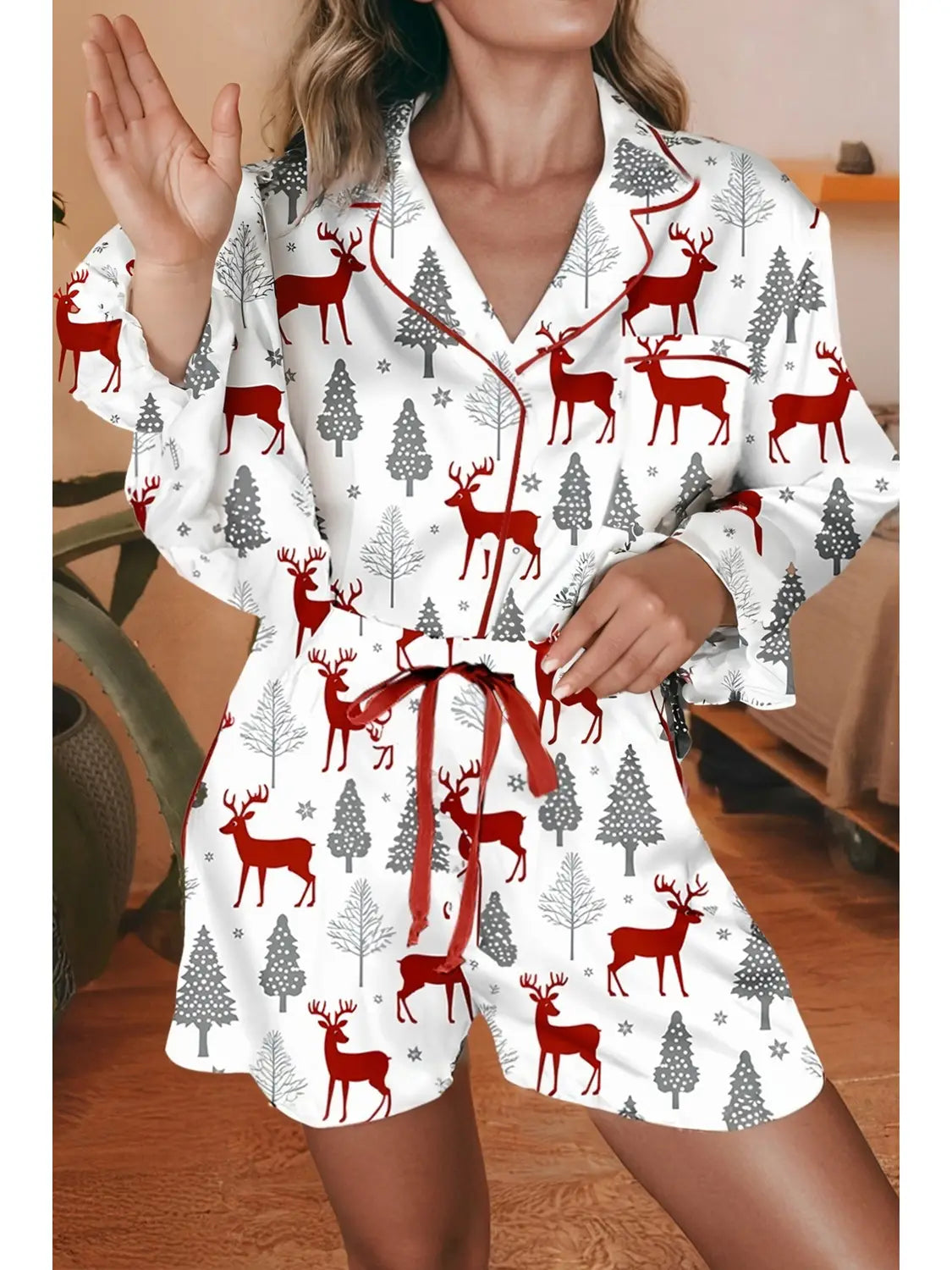 Christmas Velvet Bow Knot Pajama 2pcs Pajama Set