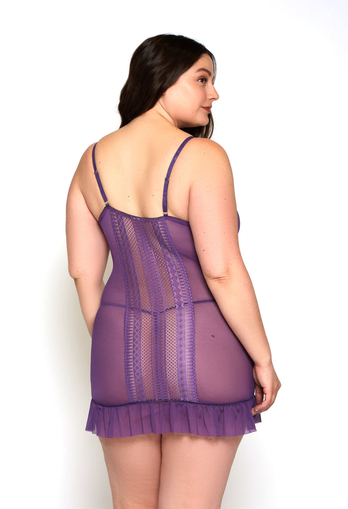 Harper Embroidered Mesh Drop Waist Babydoll & G-String Set