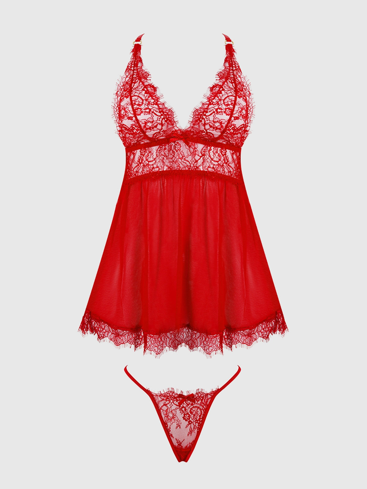 Mila Eyelash Lace & Mesh Baby Doll w/ G-String