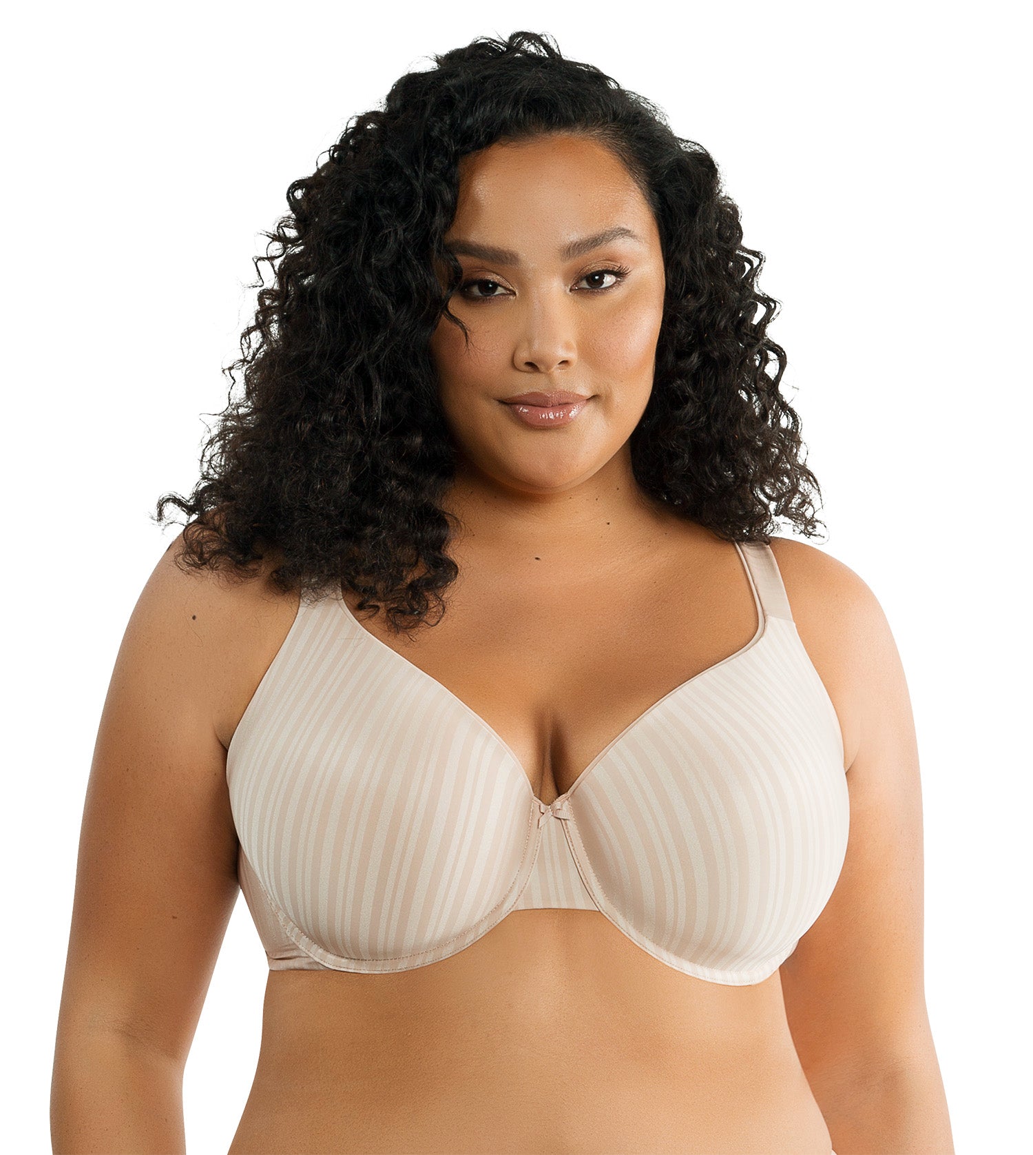 The Parfait Aline Molded T-Shirt Bra is designed with smooth, seamless cups and soft padding for a naturally rounded shape. It delivers invisible support under any outfit. The underwire provides gentle lift, while striped jacquard microfiber adds a subtle touch of timeless elegance. Finished with adjustable straps, a secure back closure, and a delicate center bow.